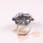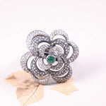 Victorian White Floral Ring – Sterling Silver Jewelry with Rich Green Diamond and Natural White Diamond Accents, Elegant Gift for Her