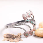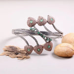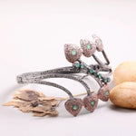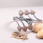 Vintage 1990s Heart Cuff Bracelet – Antique 925 Sterling Silver Bangle with Green Stone, Unique Statement Jewelry Gift for Women ◆ Bracelet Detail:-