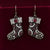 Vintage Christmas Stocking Earrings, Pink Ruby & Lab Grown Antique Silver Holiday Dangle Earrings