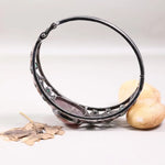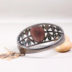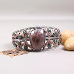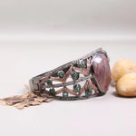 Vintage Pink Gemstone Bracelet – Handmade Silver Cuff with Emerald Accents, Antique Style Statement Jewelry & Unique Gift for Her