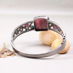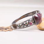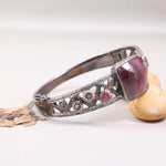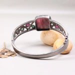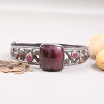 Vintage Ruby Square Bracelet – Antique Style Sterling Silver Cuff with Large Pink Gemstone, Bohemian Statement Jewelry & Unique Gift for Her